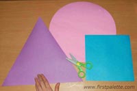 اگر هدف صرفا درست کردن کاردستي آموزشي اشکال هندسي است، ابتدا براي پس زمينه، مقوا ي مورد نظرتان را انتخاب کرده و به شکل دلخواه مثلا دايره، مربع، مثلث يا مستطيل ببريد.