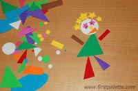 سپس از کودک بخواهيد با اين اشکال بازي کند تا يک شکل جديد مثلا شکل آدمک زير درست کند: