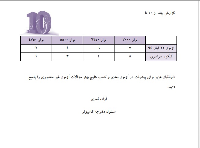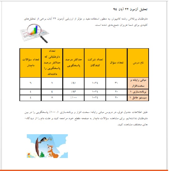 تحلیل آزمون 22 آبان 94 سوم کامپیوتر