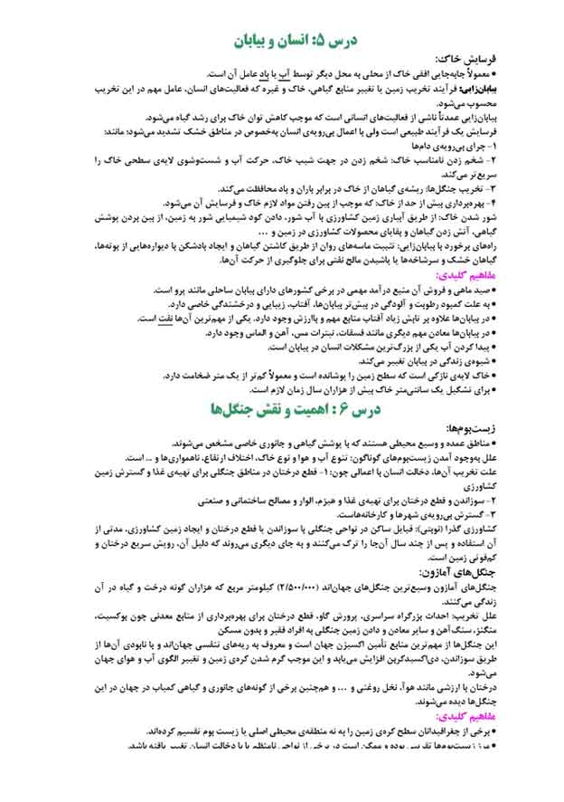 نکات کلیدی و مهم درسهای 5 تا 7 جغرافیای دوم انسانی