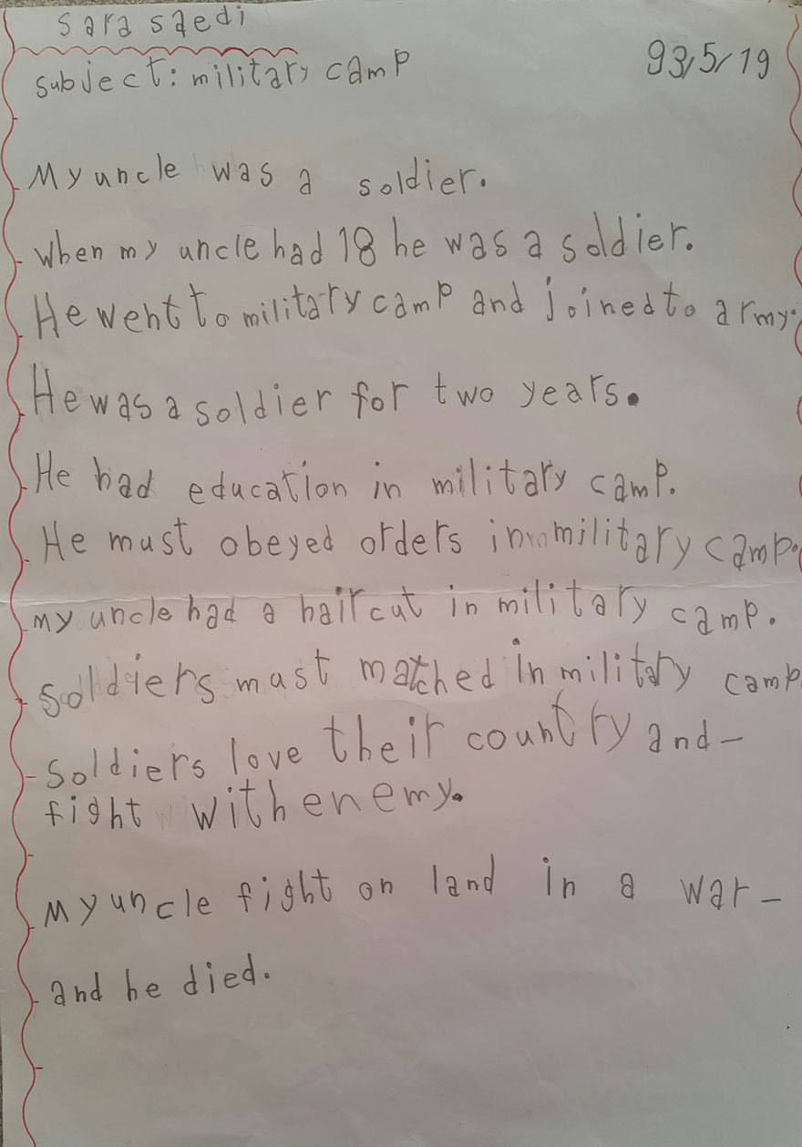 متن انگلیسی سارا ساعدی هنگامی که 6 ساله بود