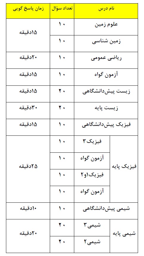 تعداد سؤال و زمان پاسخگویی- آزمون14 اسفند چهارم تجربی را اینجا ببینید.