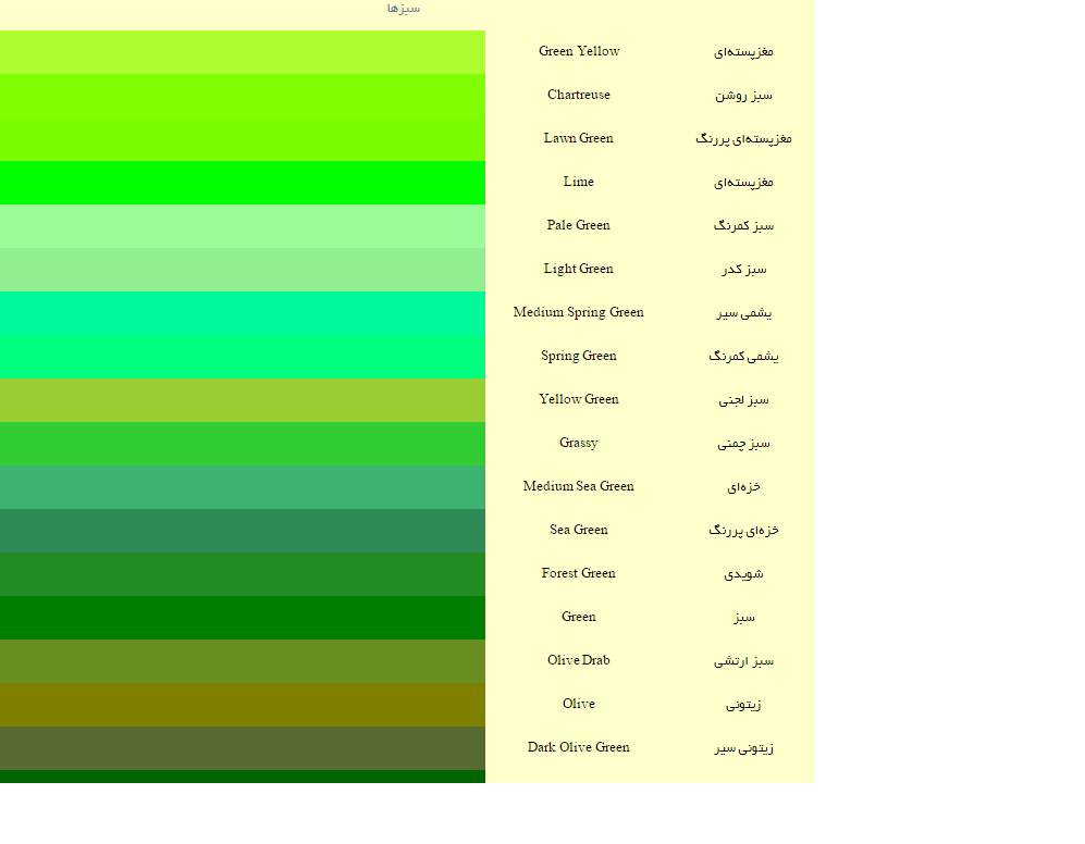 رنگها در زبان انگلیسی به صورت تصویری (سبز)