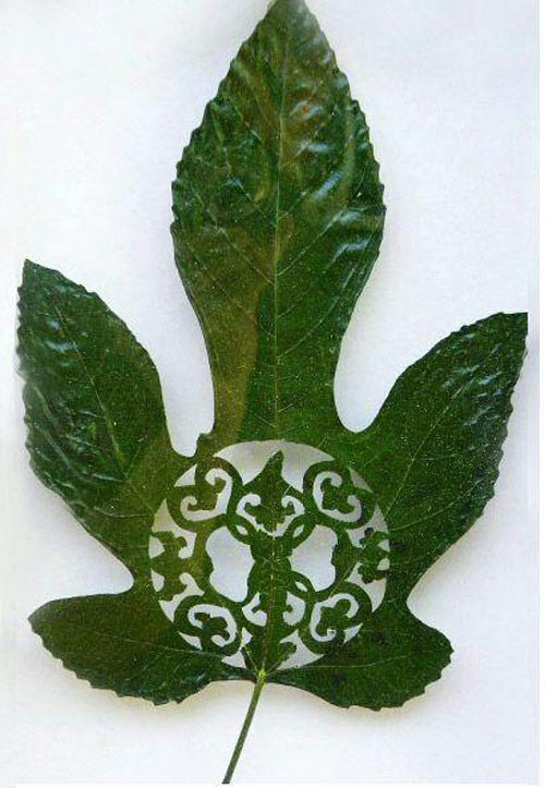 لورنزودوران که یک هنرمند اسپانیایی است سعی کرده با تیغ جراحی برگها را برش داده و طرح های زیبایی را خلق کند.وی برای جدا کردن قسمتهای طراحی شده و شکل دادن ظریف آنها از وسایل دندانپزشکی استفاده می کند.