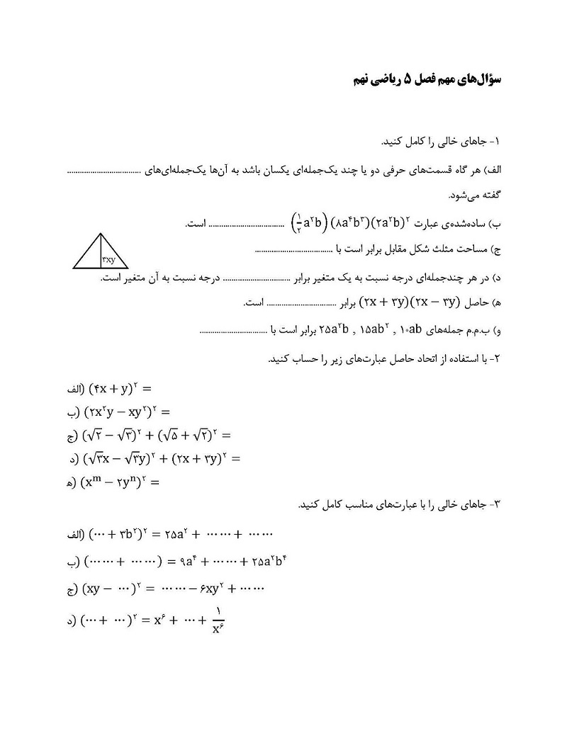 در این قسمت میتوانید سؤالهای مهم فصل 5 ریاضی نهم را دانلود کنید.