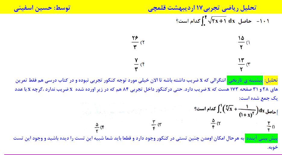تحلیل ریاضی تجربی آزمون 17 اردیبهشت
