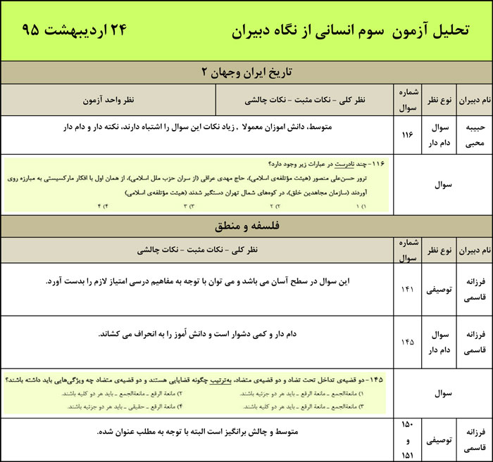 پس از آزمون ، نکات مثبت و چالشی آزمون ها را از نگاه دبیران مشاهده فرمایید و شما دانش آموز عزیز می توانید همراه با تکمیل تحلیل خودتان ، آن ها را در کتاب خودآموزی وارد کنید.