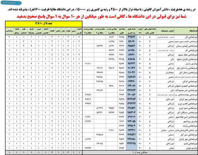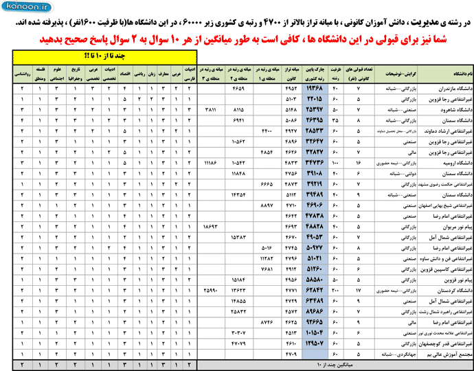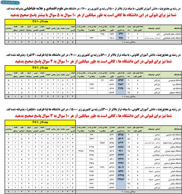 رشته مدیریت :کدام دانشگاه می خواهیدبروید؟چند تا از 10تا؟