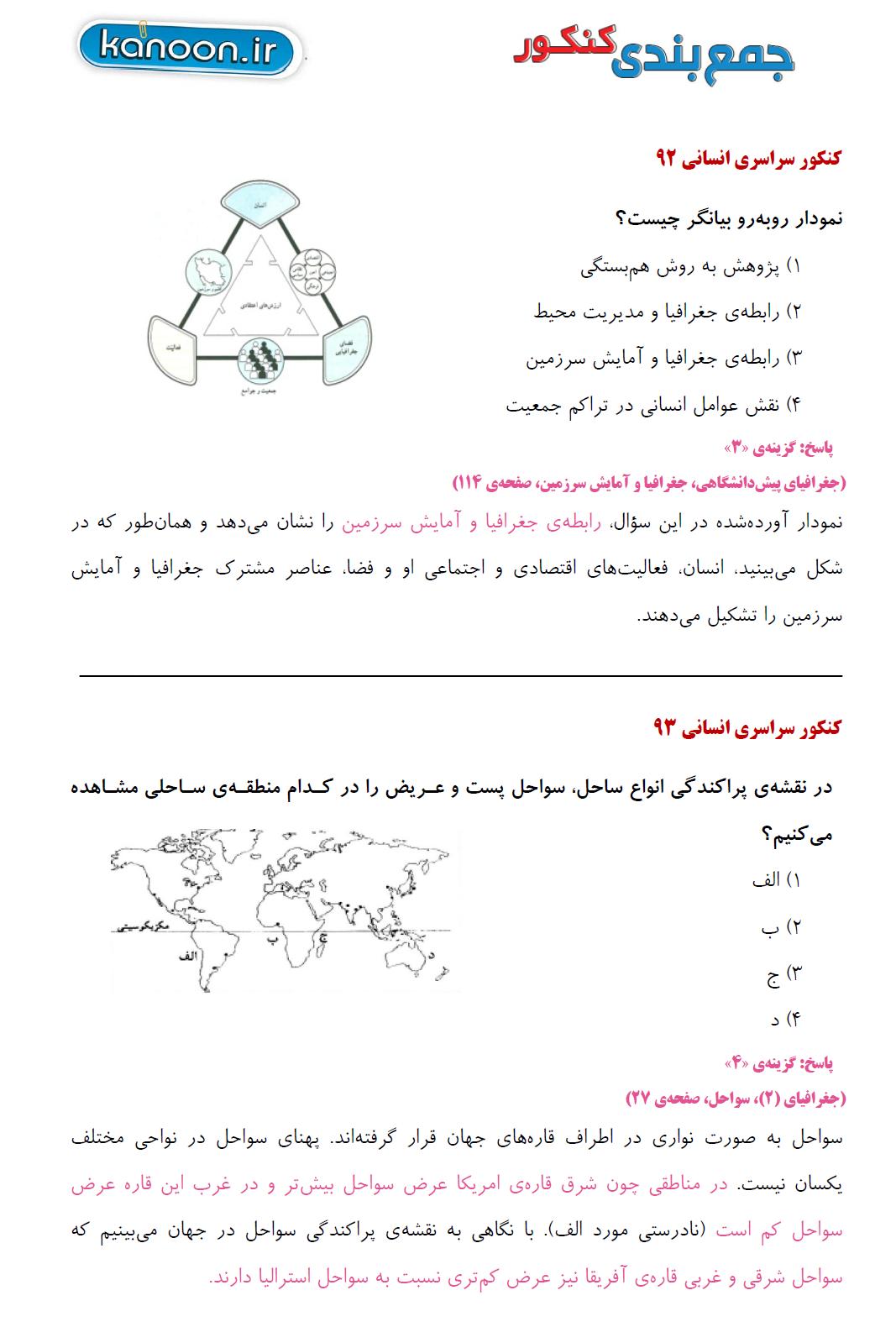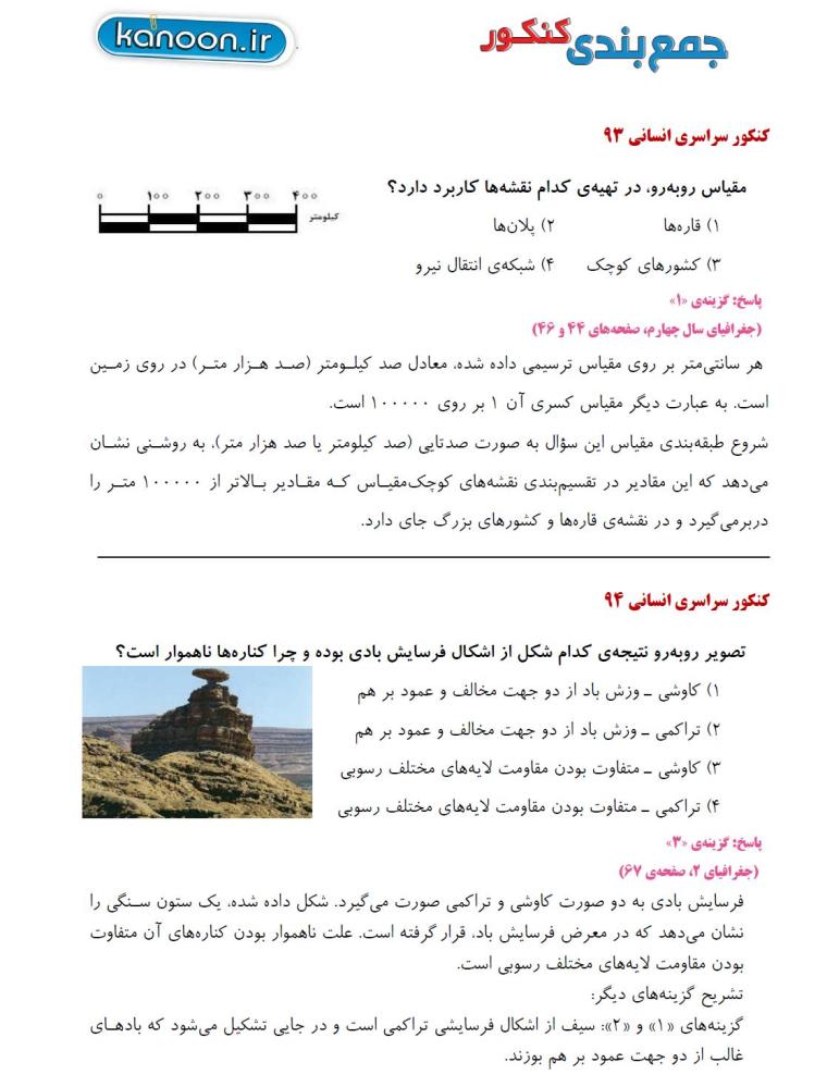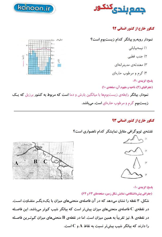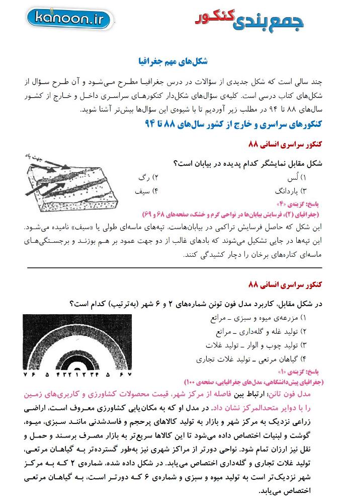 شکلهای مهم جغرافیا در کنکورهای سراسری داخل و خارج کشور از سال 88 تا 94