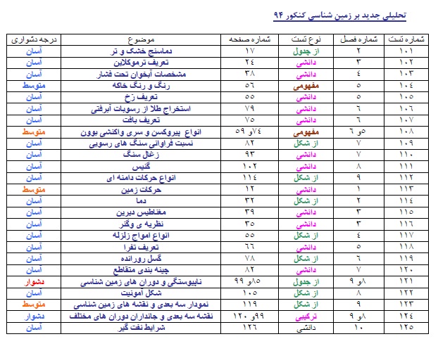 بررسی تیپ -موضوع و سطح دشواری درس زمینشناسی در کنکور 94