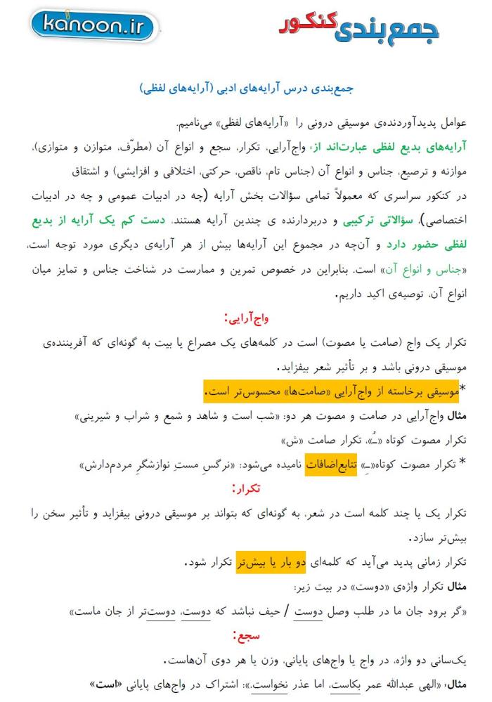 جمعبندی درس آرایههای ادبی (آرایههای لفظی)
