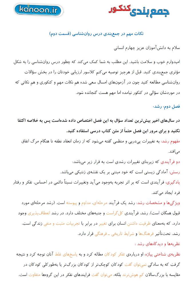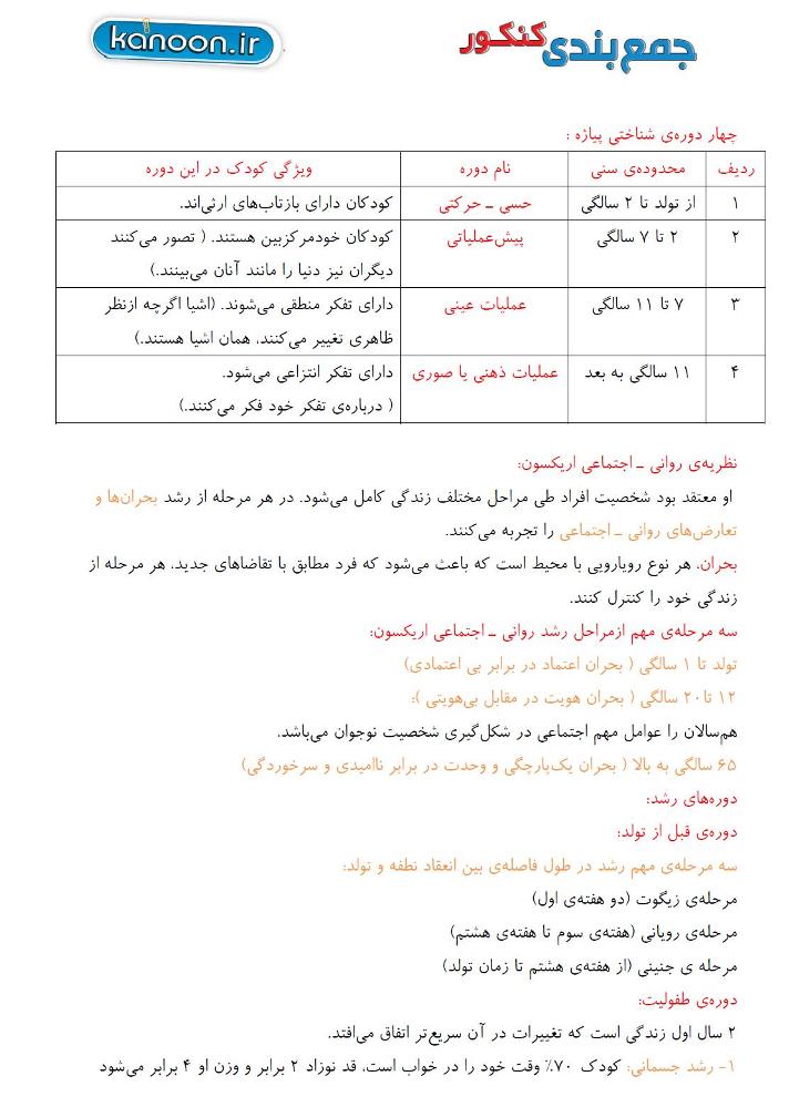 نکات مهم در درس روانشناسی (فصل دوم: رشد)