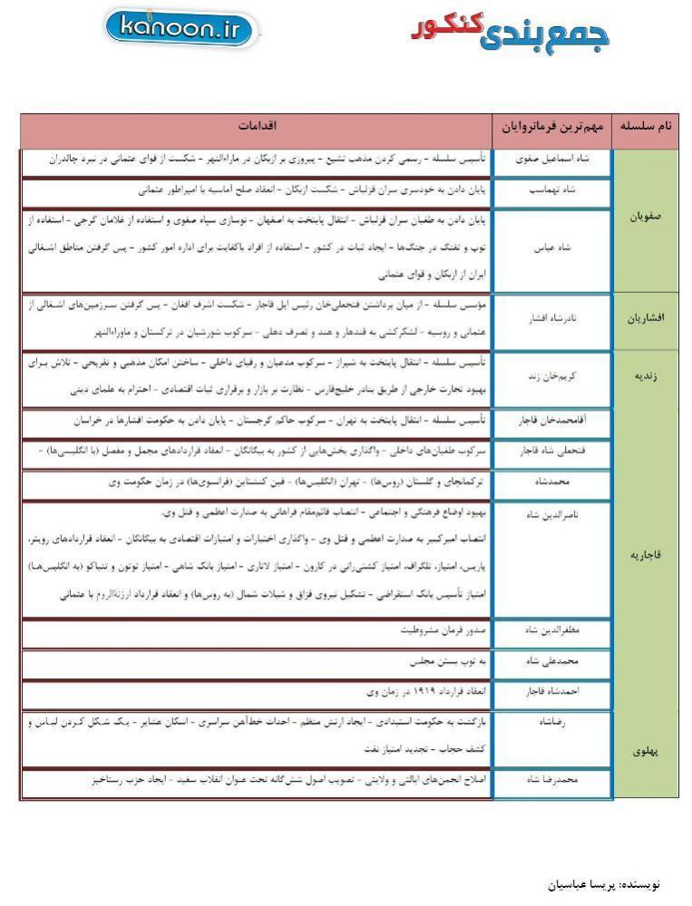 تاریخ ایران در دوران باستان، جدید و معاصر (اقدامات فرمانروایان)