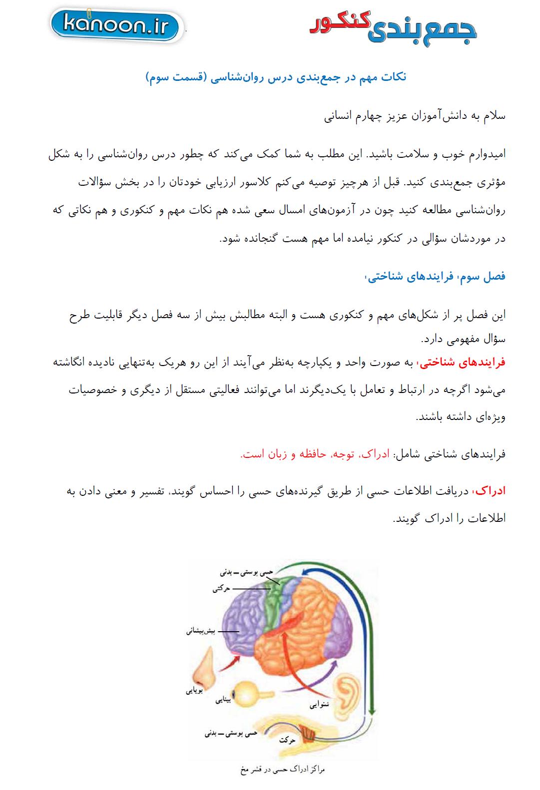 نکات مهم در درس روانشناسی (فصل سوم: فرایندهای شناختی)