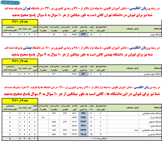 کارنامه کنکور بر اساس رشته و دانشگاه