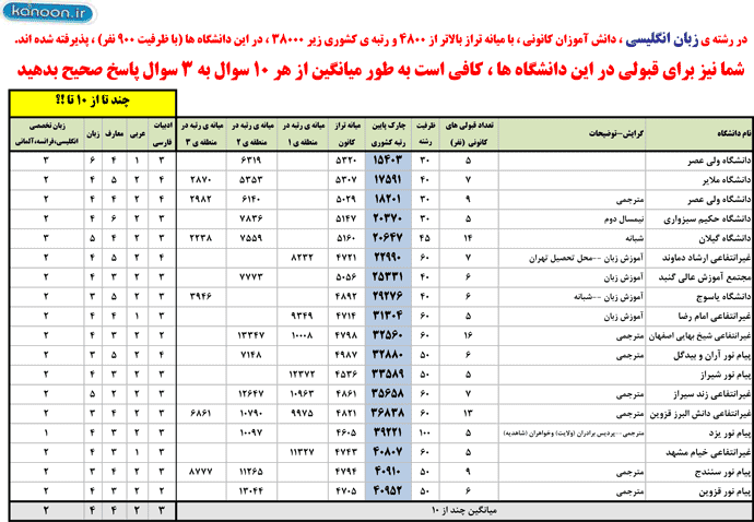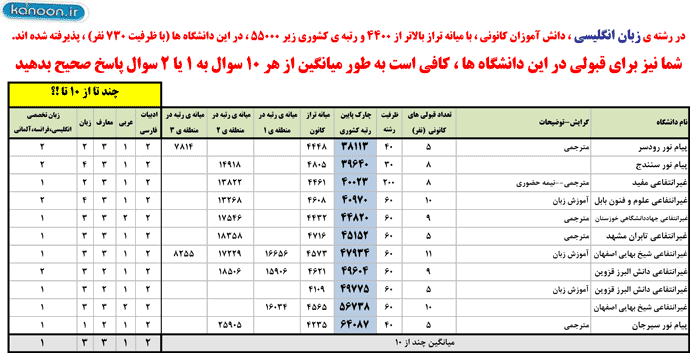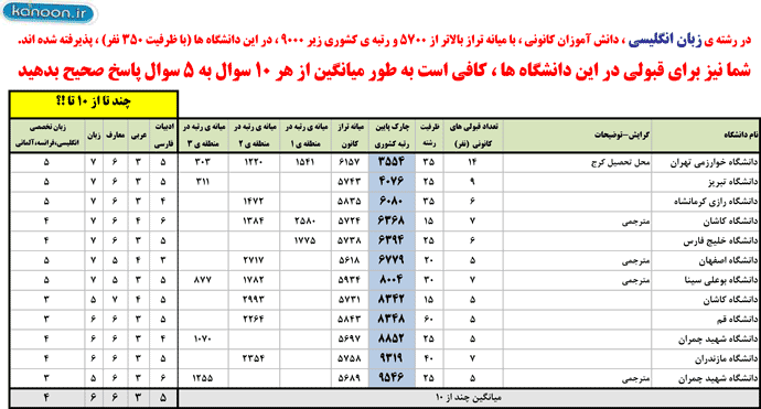 زبان انگليسي :کدام دانشگاه مي خواهيدبرويد؟چند تا از 10تا؟