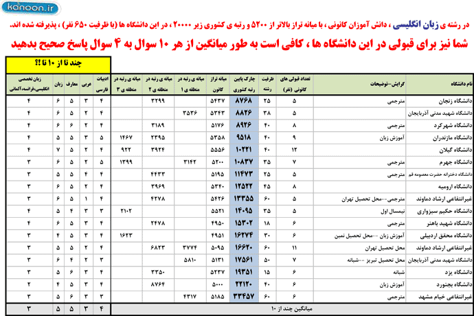 آمار و اطلاعات قبولی های کنکور 91 در رشته زبان انگلیسی را در این قسمت مشاهده کنید.