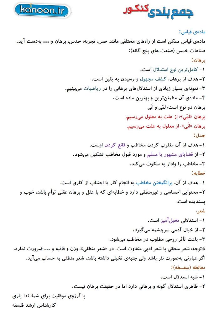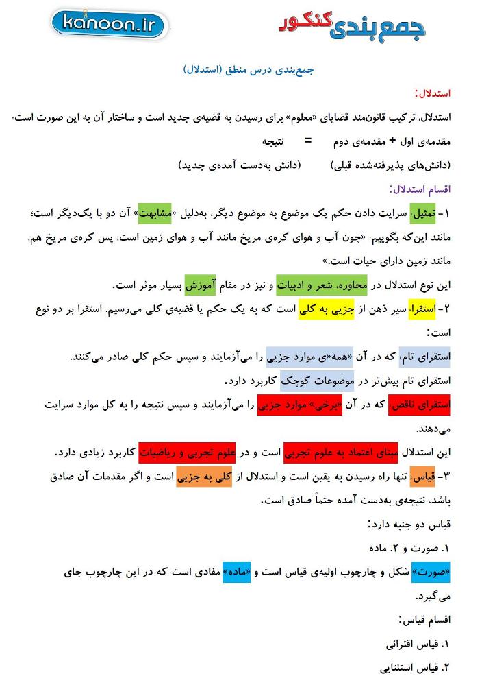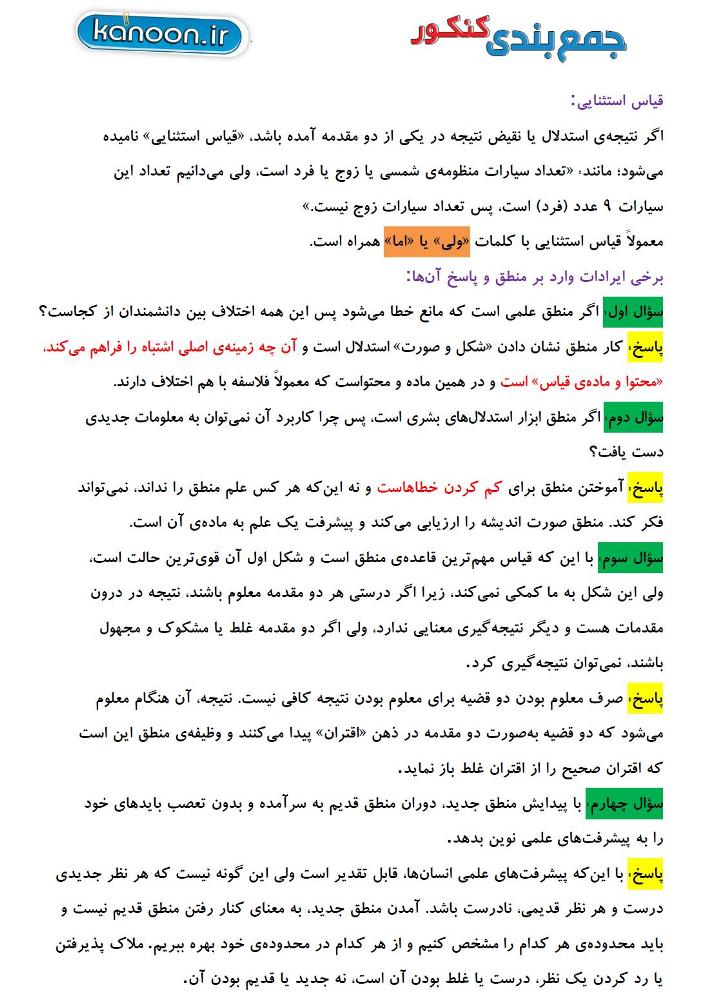 گزیده نکات استدلال (درس منطق) - جمعبندی کنکور 95