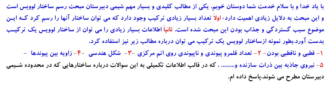 شیمی آموزش نکتههای رسم ساختار لوویس در فایل پیوست آموزش داده شده است