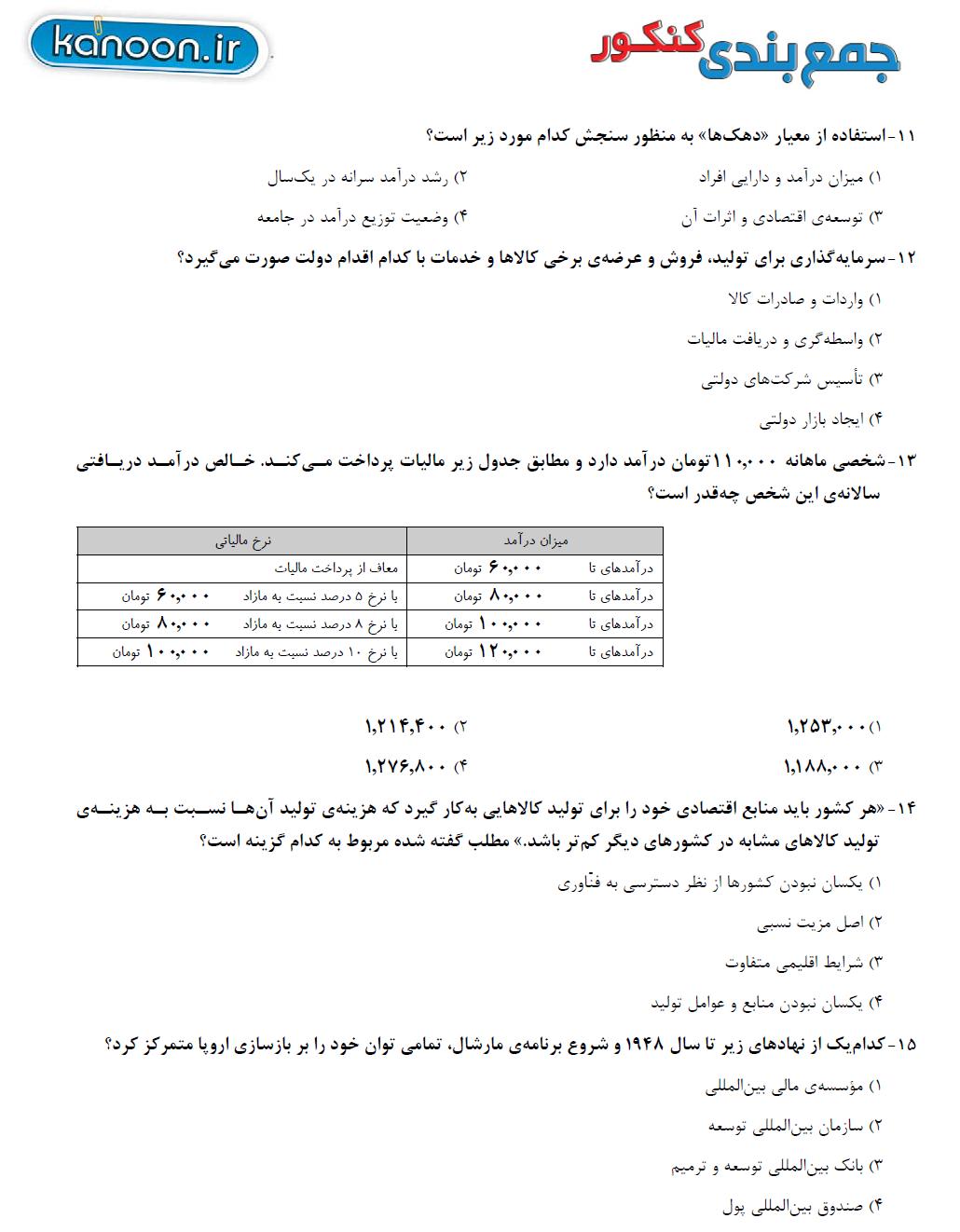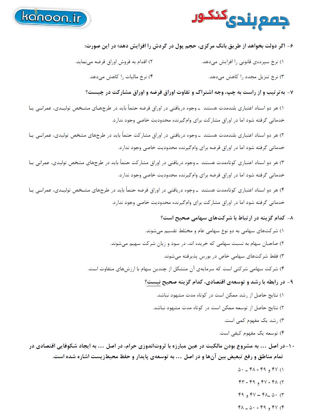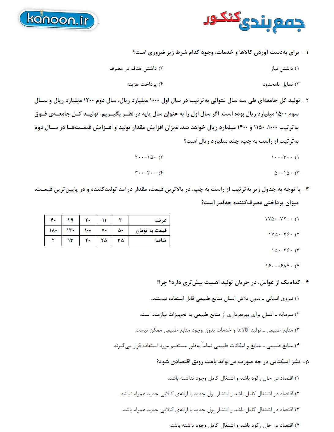 آزمون جامع اقتصاد برای داوطلبان کنکور انسانی