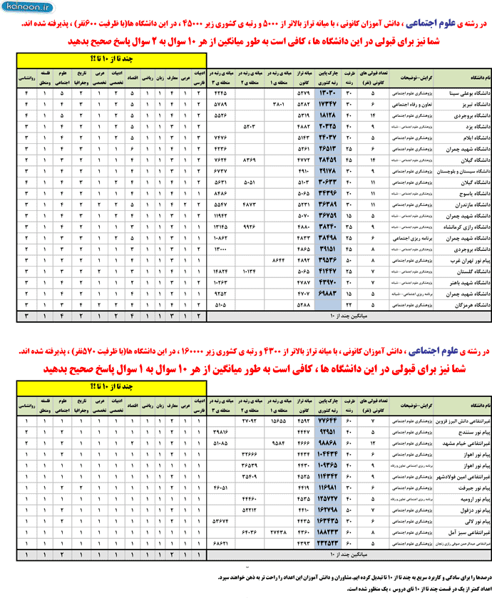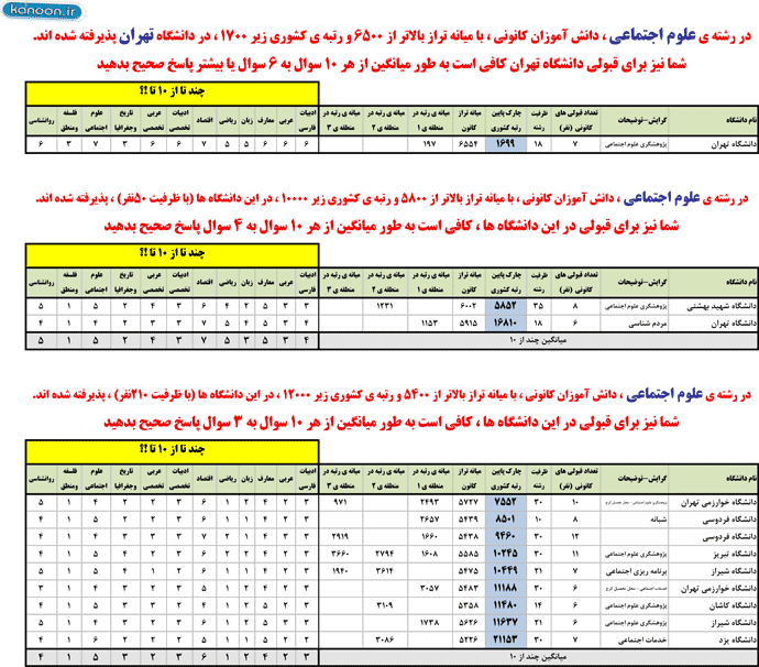 رشته علوم اجتماعی:کدام دانشگاه می خواهیدبروید؟چند تا از10تا؟