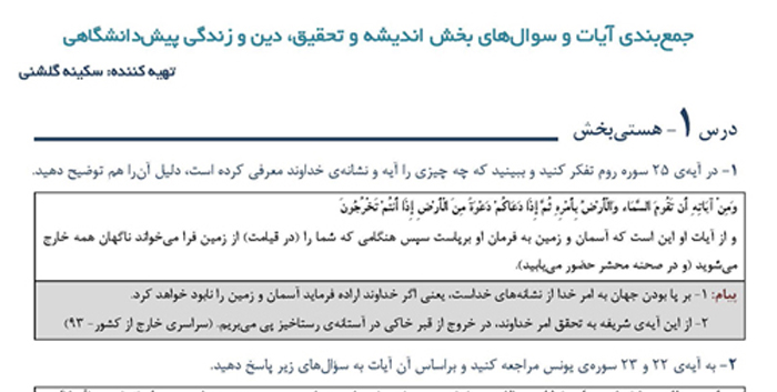 سکینه گلشنی:جمعبندی آیات و سؤالات اندیشه و تحقیق دین و زندگی4