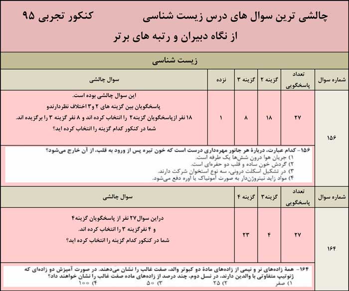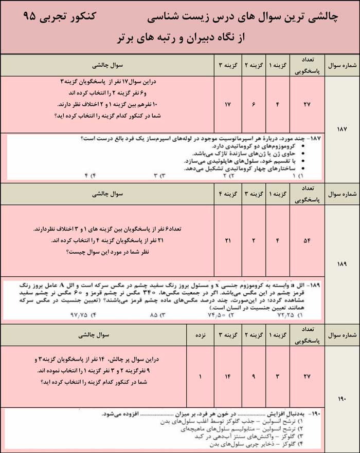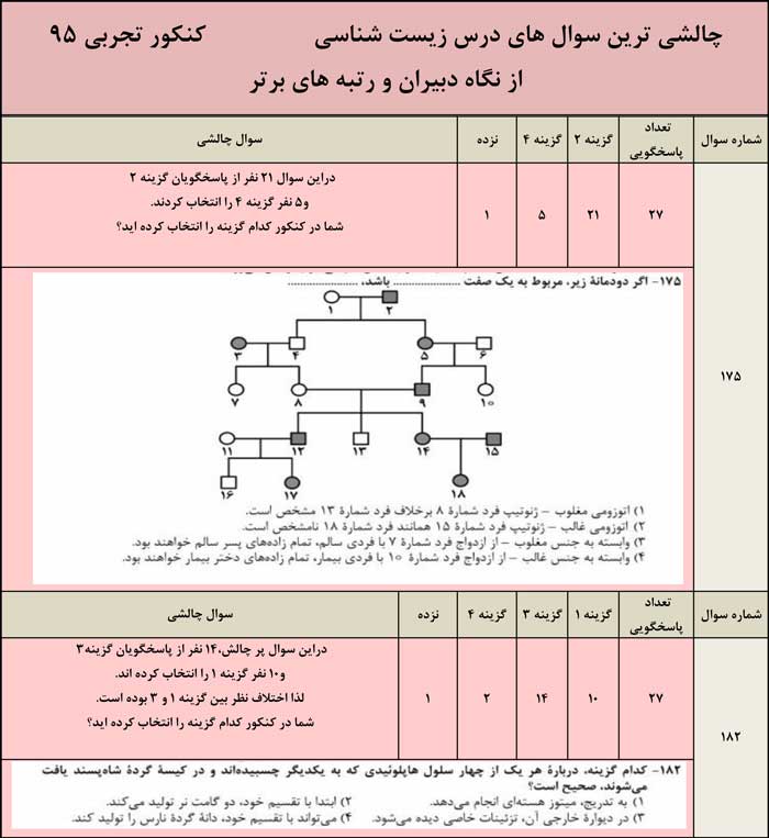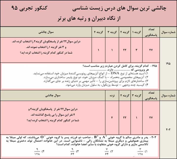 سوال‌های چالشی زیست شناسی کنکور تجربی95 ازنگاه دبیران و برترها