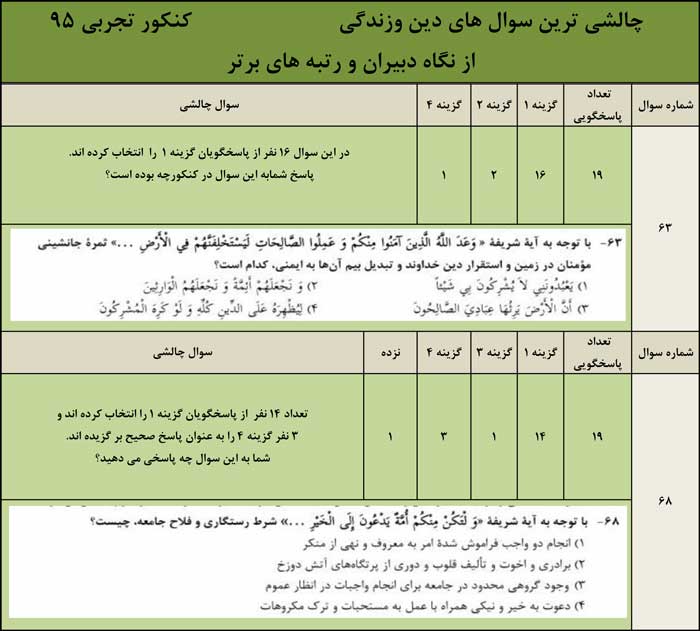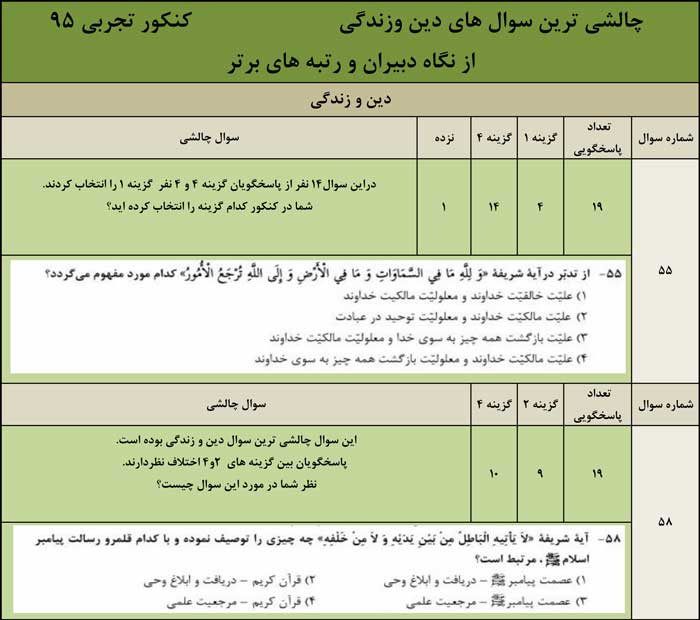 سوال‌های چالشی دین وزندگی کنکور تجربی 95 ازنگاه دبیران وبرترها
