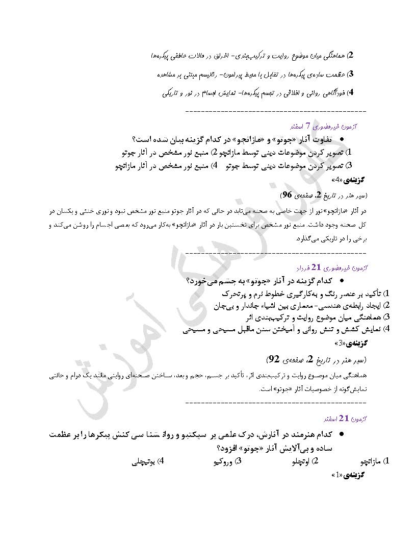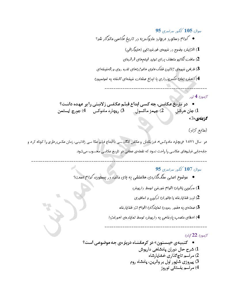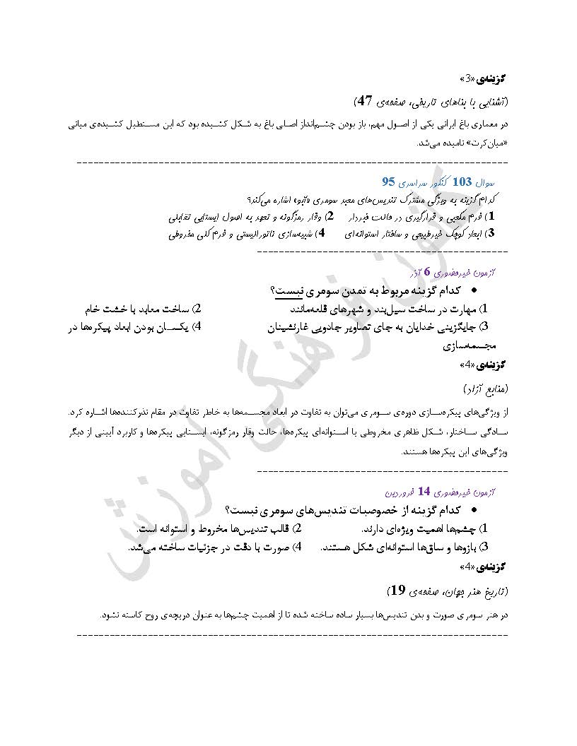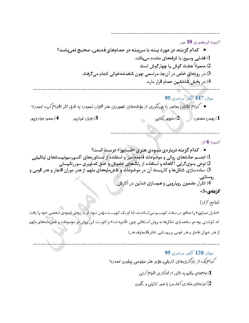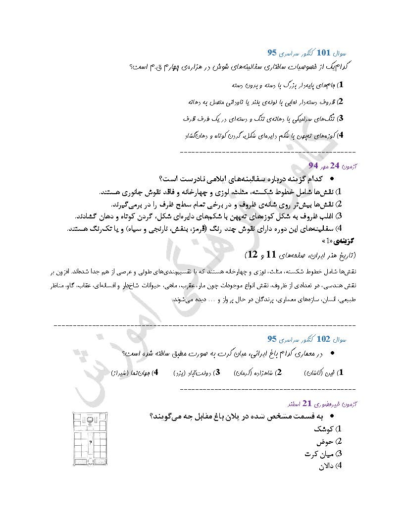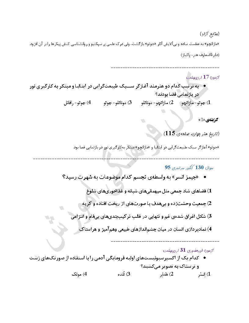 مشابهتهای آزمونهای کانون با کنکور 95 - درک عمومی هنر