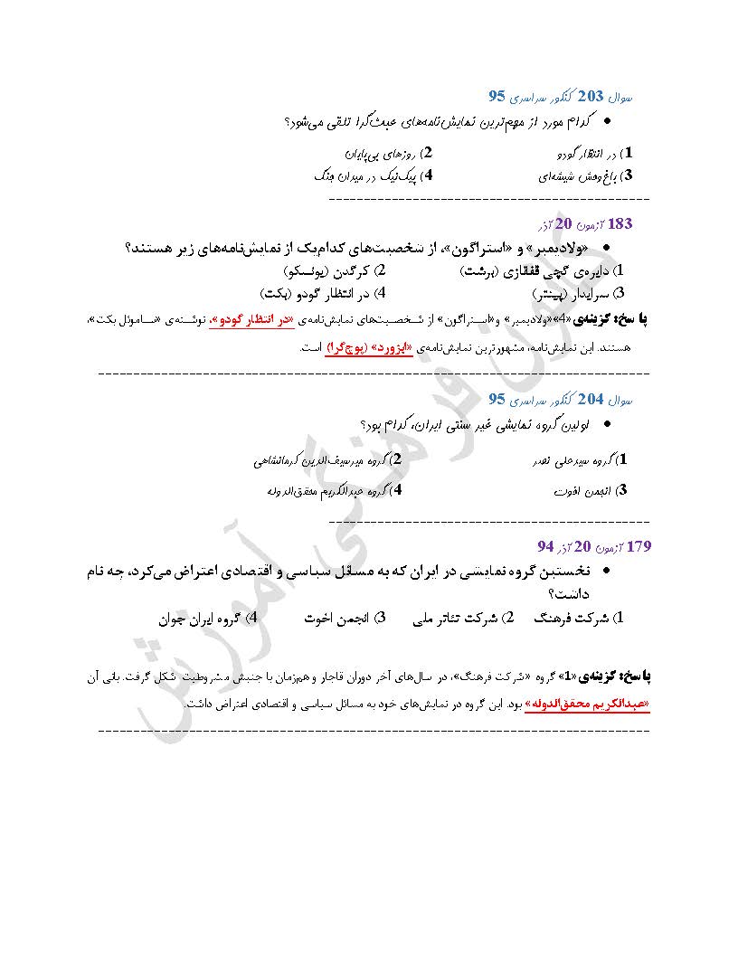 شباهت سوالات کتاب آبی و آزمون کانون با کنکور - خلاقیت نمایشی