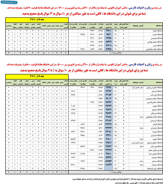 زبان وادبیات فارسی:کدام دانشگاه می خواهیدبروید؟چند تااز10تا؟