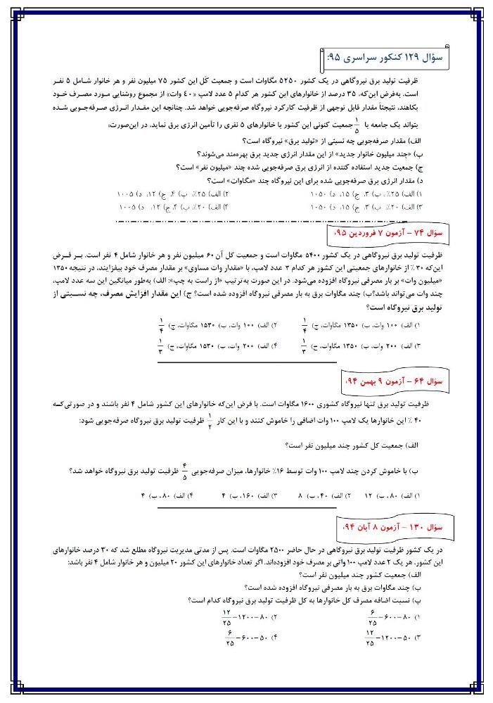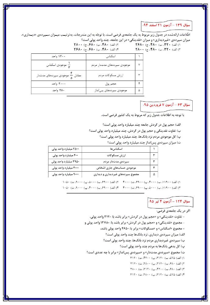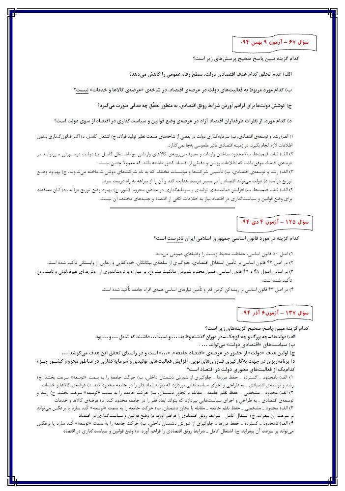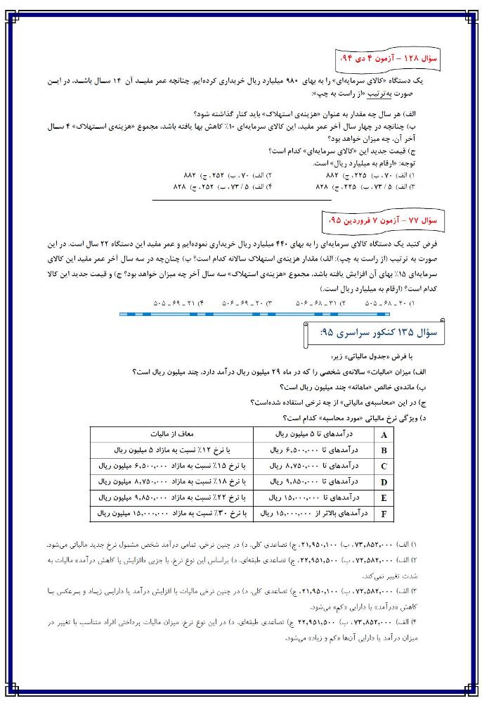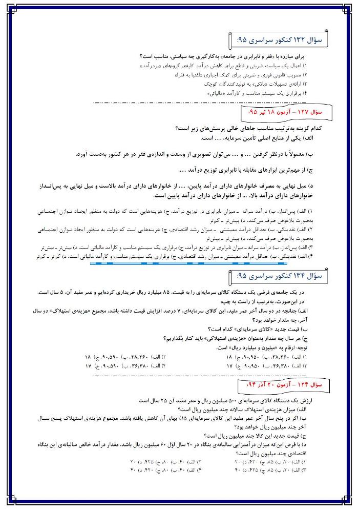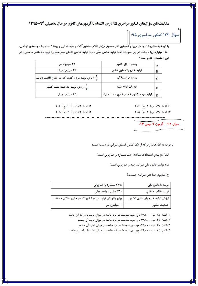 مشابهتهای سؤالهای کنکور سراسری 95 درس اقتصاد با آزمونهای کانون در سال تحصیلی 94-1395