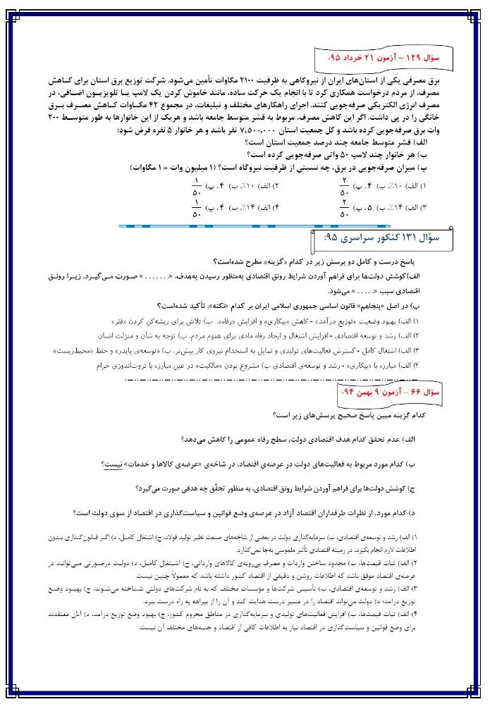 مشابهت آزمونهای کانون با کنکور سراسری 95: درس اقتصاد