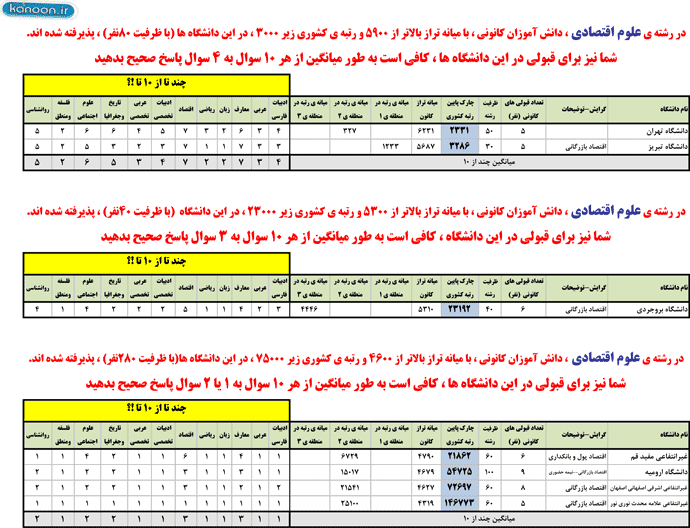 رشته علوم اقتصادي:کدام دانشگاه مي خواهيدبرويد؟چند تا از10تا؟