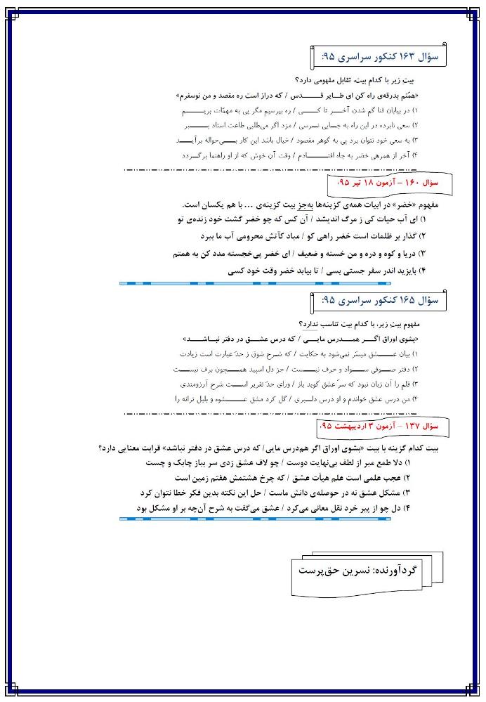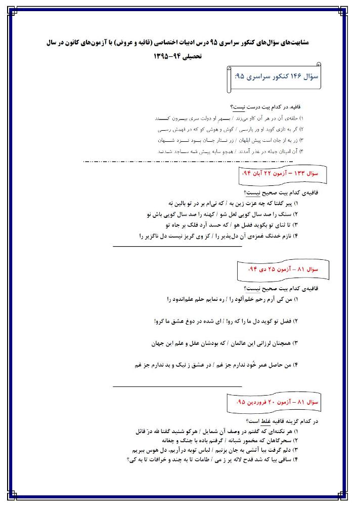 مشابهت سؤالهای ادبیاتاختصاصی کنکور انسانی 95 با آزمونهای کانون
