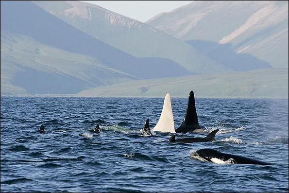 دانشمندان درحالی که صوت شناختی و تعاملی میان نهنگها و دلفینها در جزایر کامند در قسمت شمالی اقیانوس آرام را بررسی می کردند به یک بالچه نهنگ سفید که دو متر طول داشت رسیدند و متوجه شدند که این بالچه متعلق به یک نهنگ قاتل سفید رنگ است، دانشمندان آن را کوه یخ نامگذاری کردند. گفته می شود که این نهنگ سفید در یک گروه خانواده متشکل از 12 نهنگ قاتل دیگر در آبهای شمال غربی اقیانوس آرام به دور از سواحل آسیای شرقی روسیه زندگی می کند.