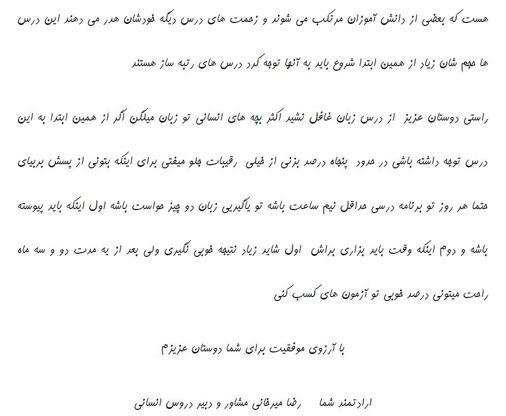 رضا میرخانی: مشاوره برای درس خواندن دانشآموزان رشتهی انسانی