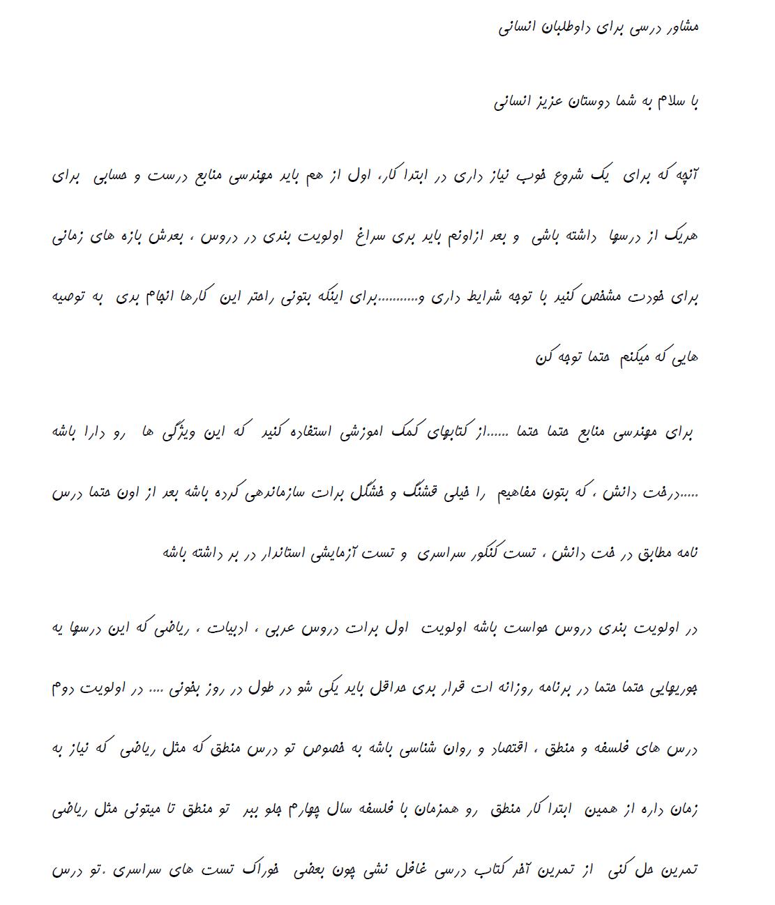 مشاوره برای درس خواندن دانشآموزان رشتهی انسانی