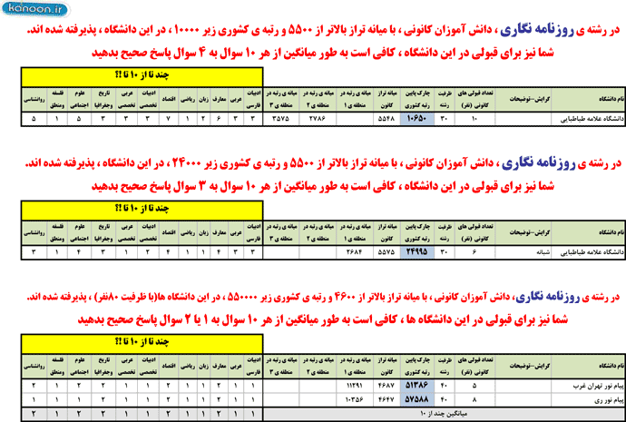 روزنامه نگاری:کدام دانشگاه می خواهیدبروید؟چند تا از 10تا؟