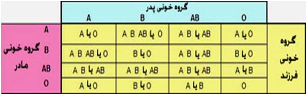 بنابراين مي توان گروه خوني فرزندان را مطابق شکل پيش بيني کرد: