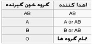 نکته:گروه خوني O- اهدا کننده عمومي و گروه خوني AB+ گيرنده عمومي ناميده ميگردند.