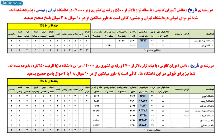 رشته تاريخ :کدام دانشگاه مي خواهيدبرويد؟چند تا از 10تا؟