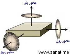هر متحرک در فضا ۶ درجه آزادي دارد که ٣ حرکت خطي و ٣ حرکت دوراني است. براي مشخص نمودن حرکت دوراني متحرک در فضا از ٣ محور عمود بر هم استفاده مي شود که عبارتند از: محور رول يا محور طول، محور پيچ يا محور عرضي و محور ياو.