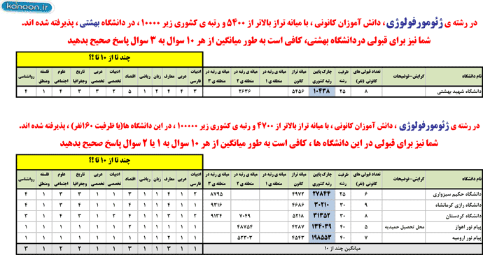 کارنامه کنکور بر اساس رشته و دانشگاه