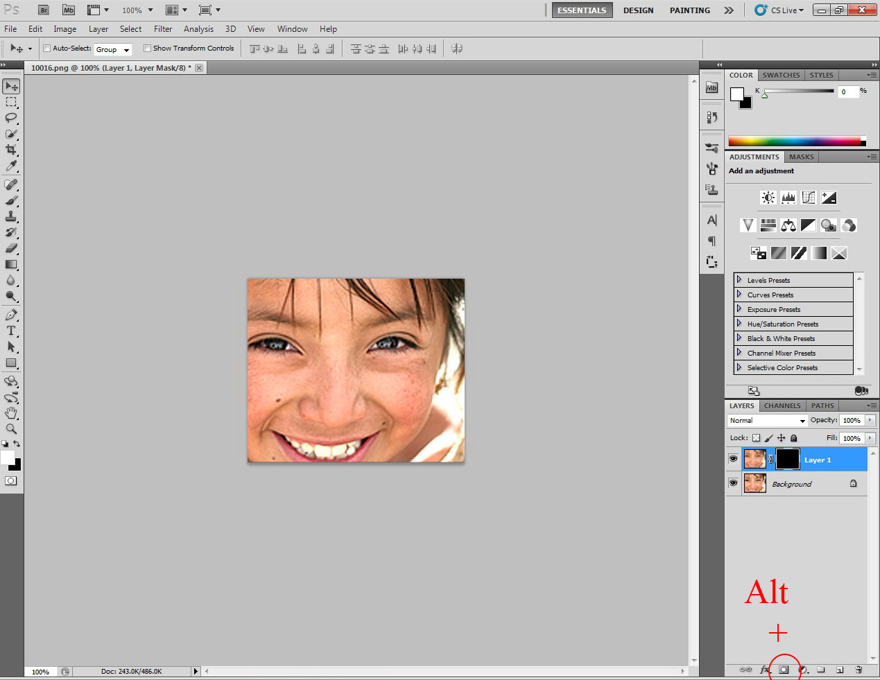 گام سوم:در اين قسمت بايد لايمونو ماسک کنيم با اين تفاوت که موقع کليک کردن گزينه ماسک (در پايين پنجره لايها)، اول کليد Alt رو ميگيريم و بعد کليک ميکنيم اين کار باعث ميشه تا لايمون برعکس ماسک بشه يعني وقتي تغييراتو شروع ميکنيم به جاي حذف عکس، عکس به وجود مياد به عنوان مثال وقتي از Brush استفاده ميکنيم هر جاي تصوير رو که بکشيم قسمتايي از عکس برميگرده.