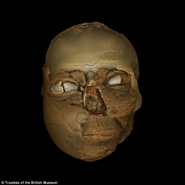 گروه تحقیقاتی با تصویربرداریها دریافتند که یکی از آروارهها زیر گچ پنهان شده است. آنها چند دندان پوسیده نیز در قسمت بالایی دهان مشاهده کردند و بینی او نیز در زمان حیاتش شکسته بود. در این جمجمه، علائمی از بستن سر صافی سر در او دیده میشد که در آن، سر را به گونهای میبستند که سر تغییر شکل دهد. در این حالت، قسمت بالا و پشت سر به حالت کشیده درمیآمد.