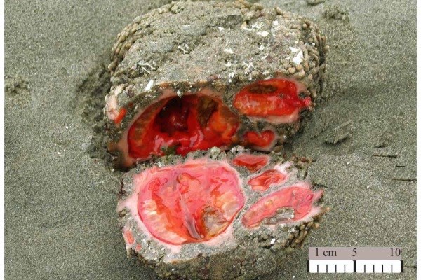 محققان به تازگی جانور دریایی عجیب و غریبی به نام «pyura chilensis» را در ساحل صخرهای شیلی و پرو کشف کردهاند که ظاهری شبیه سنگ غدهای دارد و داخلش مانند گوجهفرنگی قرمز است.