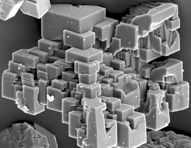ساختارهای عجیبی که در این عکس مشاهده میکنید، کریستالهایی از جنسی کربنات کلسیم هستند که حدود 2 هزار برابر بزرگنمایی شدهاند تا راحتتر بتوان آنها را مشاهده کرد.