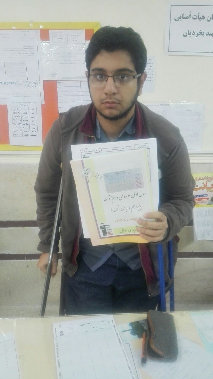 علیرضا امیدواری سال دهم تجربی با میانگین تراز 7300 و معدل 20 رتبهی اول کانون بهبهان است و در دبیرستان تیزهوشان درس میخواند.