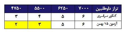 در آزمون سراسري داوطلباني که تراز آن ها در محدوده 5500 قرار داشته است توانسته بودند ازهر 10 سوال آزمون به 4 مورد آن به صورت صحيح پاسخ گويي کنند.